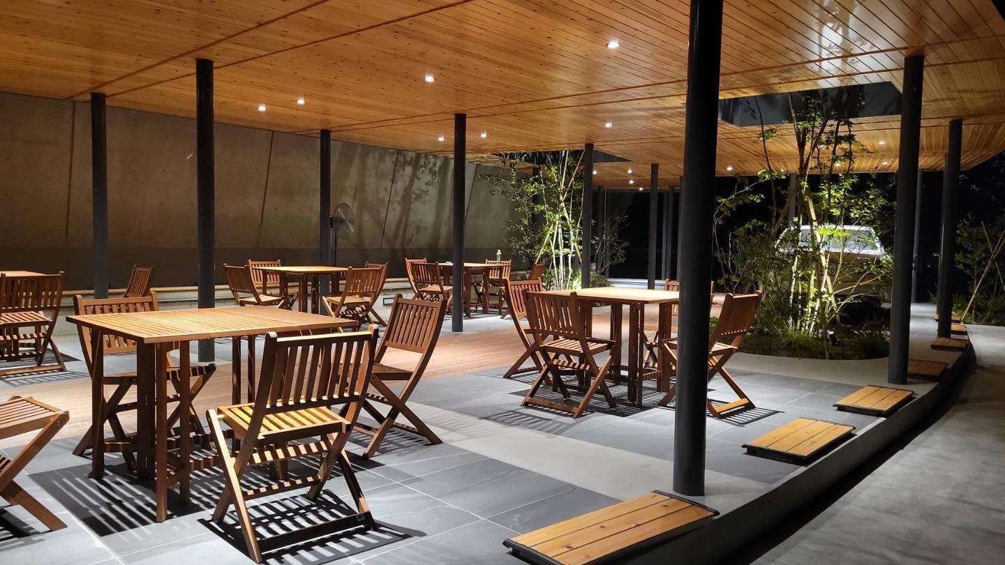 日中の営業になりますので、夜に感じる最小限に抑えたライティングや植栽の印影が醸し出す雰囲気はInstagramならではのワンシーンです。