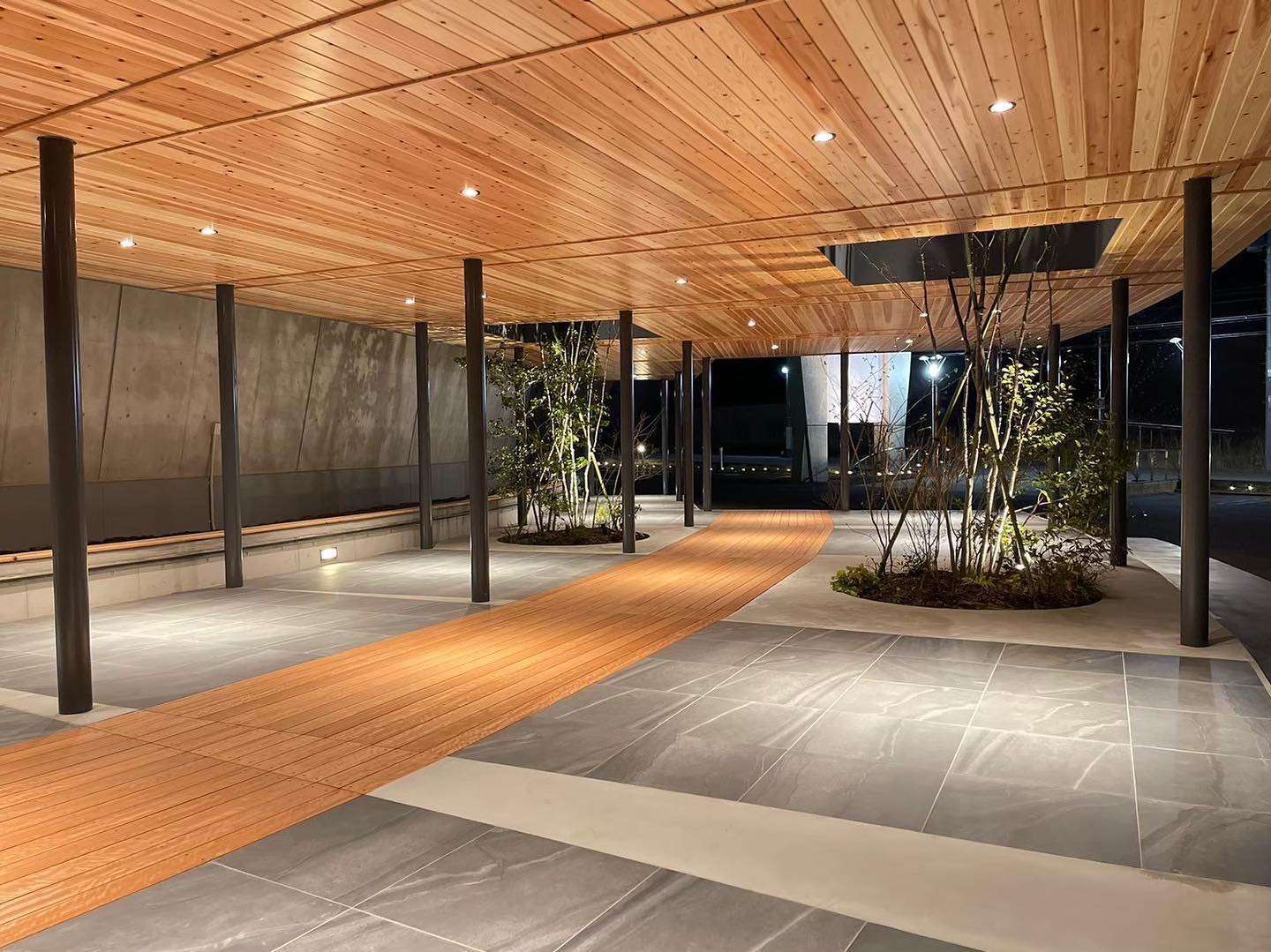 天井材を統一することで広がりを持たせつつ、床素材を変えることでめいなぷろーち・それぞれの客席をゾーニング、光とリゾート地ならではの癒しを演出する植栽を点在させる計画としました。